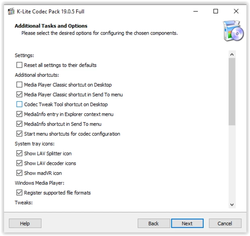 Программное обеспечение включает в себя мощный набор инструментов для улучшения качества воспроизведения аудио/видео, например, Media Player Classic Home Cinema (MPC-HC). Он предлагает впечатляющие возможности для медиаплеера . Кроме того, инструмент Codec Tweak позволяет настраивать приложение.