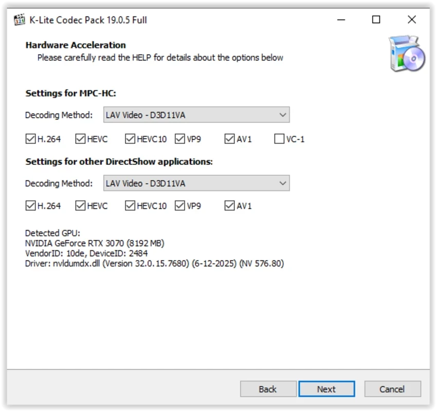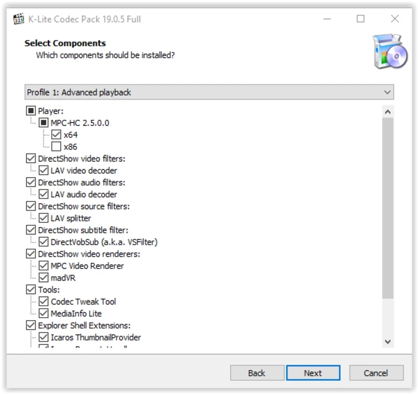 Это небольшой набор всех необходимых фильтров DirectShow, но без проигрывателя. Однако вы можете использовать установленный проигрыватель DirectShow с этим пакетом. В Windows 10/11 есть современная версия Windows Media Player, но она несовместима с пакетом ODEC, так как не использует DirectShow.